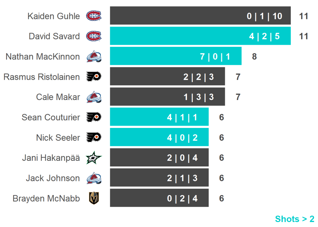 All skaters with 3+ Shots or 3+ Scoring Chances