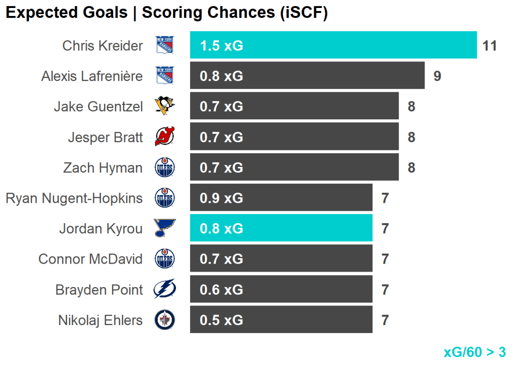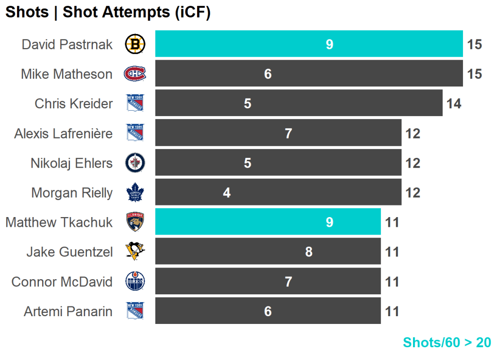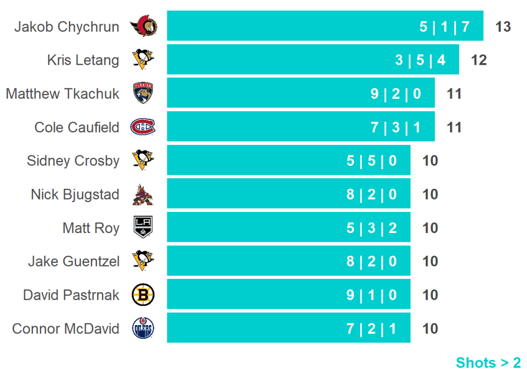 All skaters with 3+ Shots or 3+ Scoring Chances