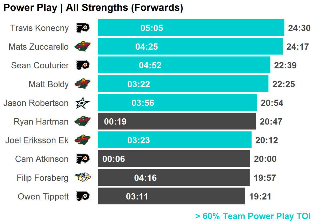 | Ryan Hartman | Minnesota Wild | 5 | 14.43 | 3 | 0.35 |