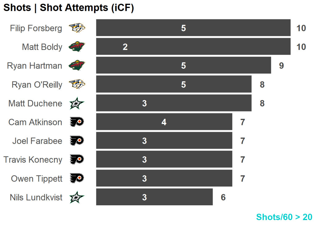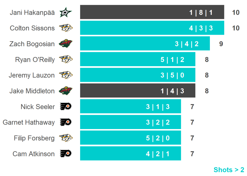 All skaters with 3+ Shots or 3+ Scoring Chances