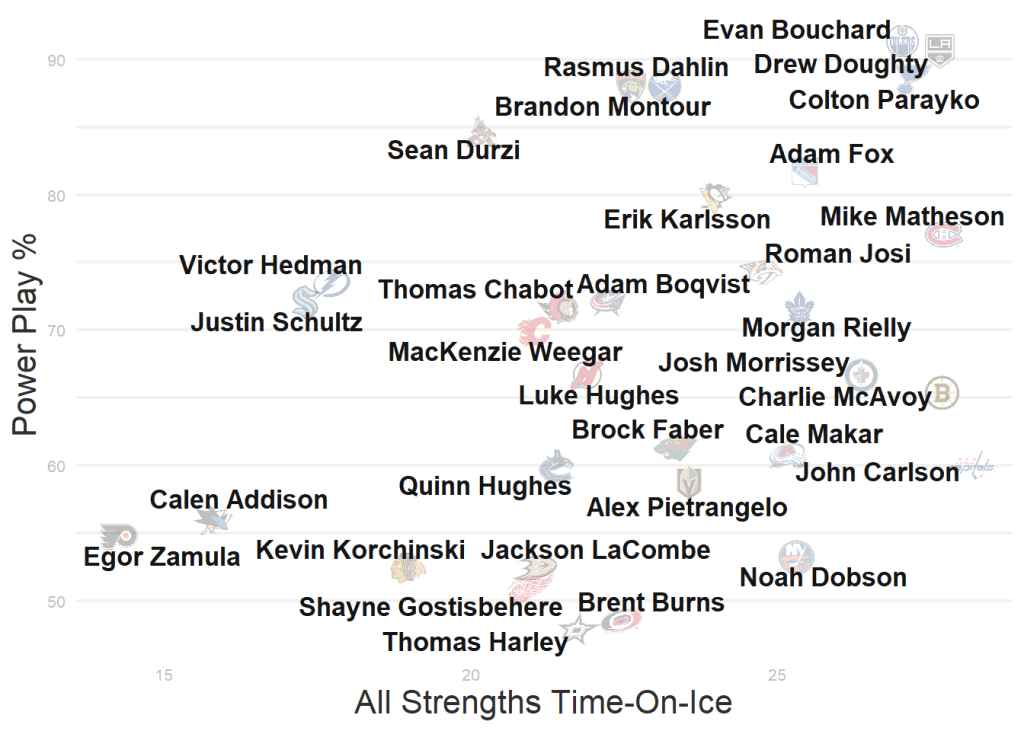 | Colton Parayko | St. Louis Blues | 02:25 | 88.5 | 32.9 | 55.6 |