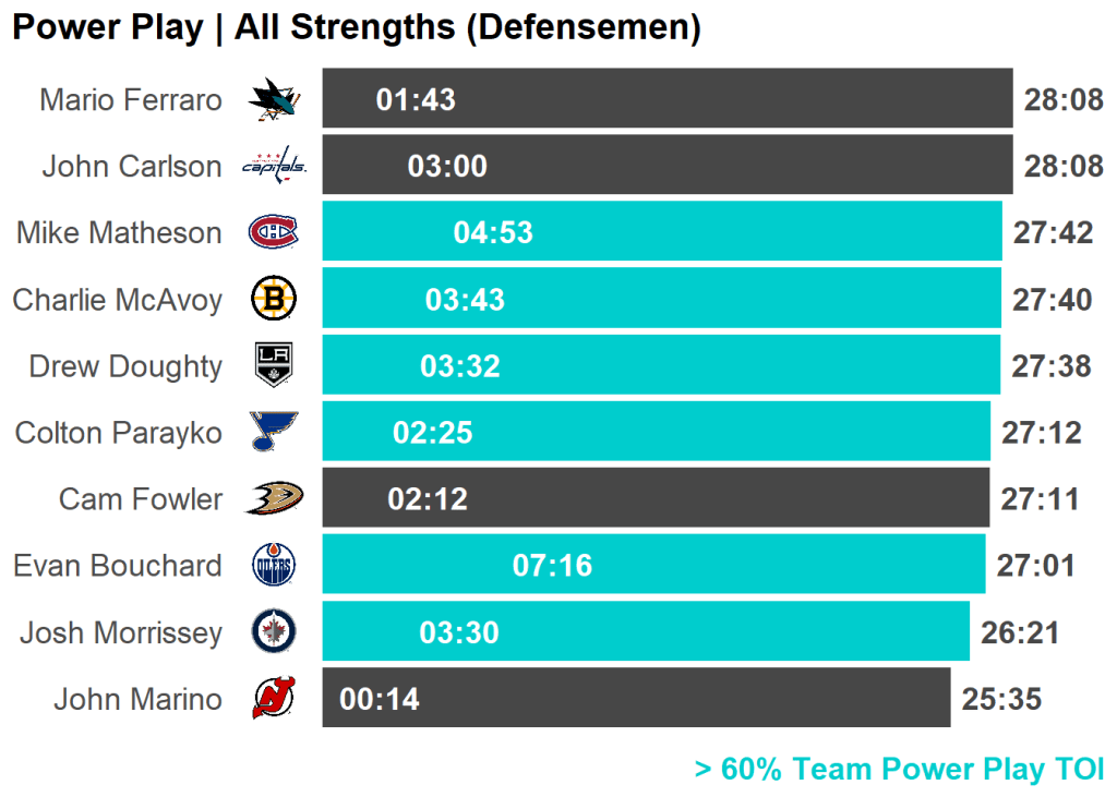 | Travis Sanheim | Philadelphia Flyers | 02:03 | 53.9 | 31.7 | 22.2 |