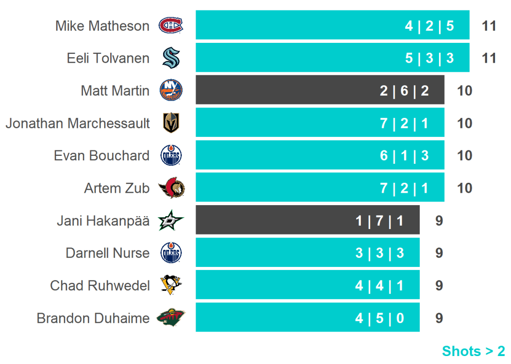 All skaters with 3+ Shots or 3+ Scoring Chances