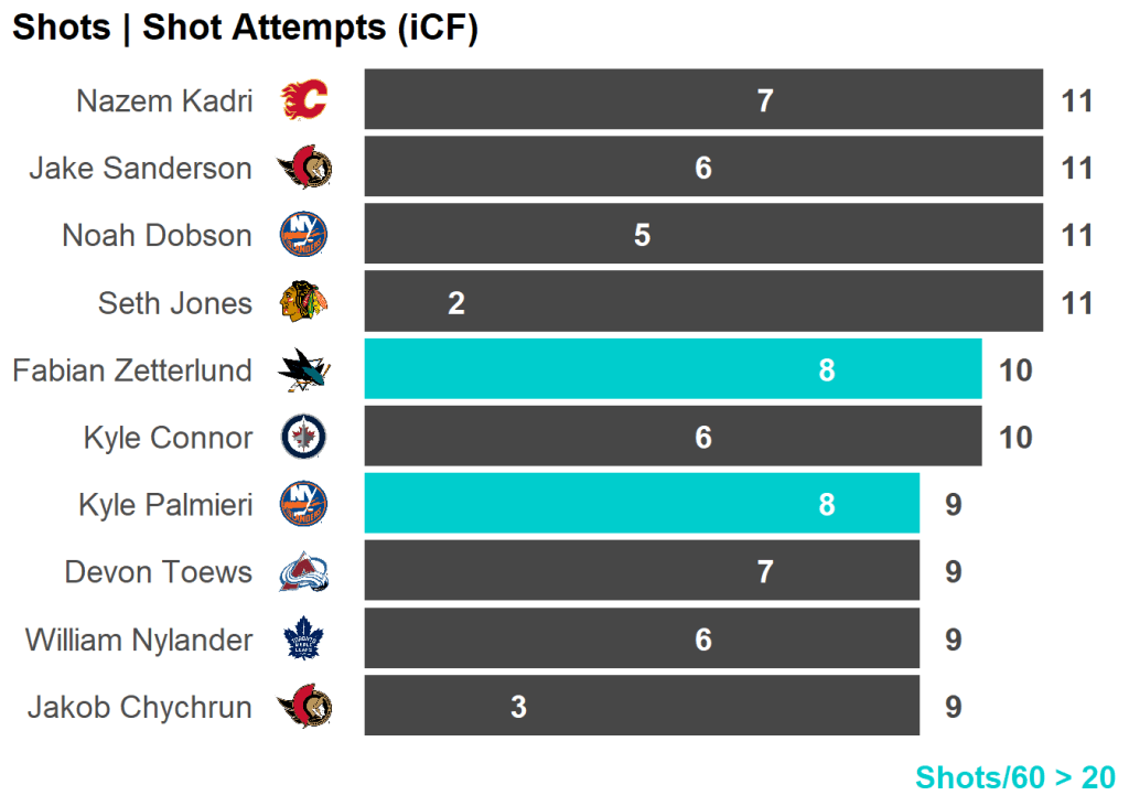All skaters with 3+ Shots or 3+ Scoring Chances