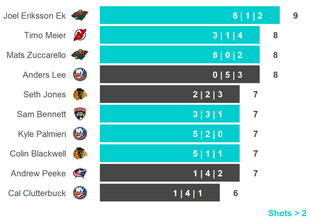 All skaters with 3+ Shots or 3+ Scoring Chances