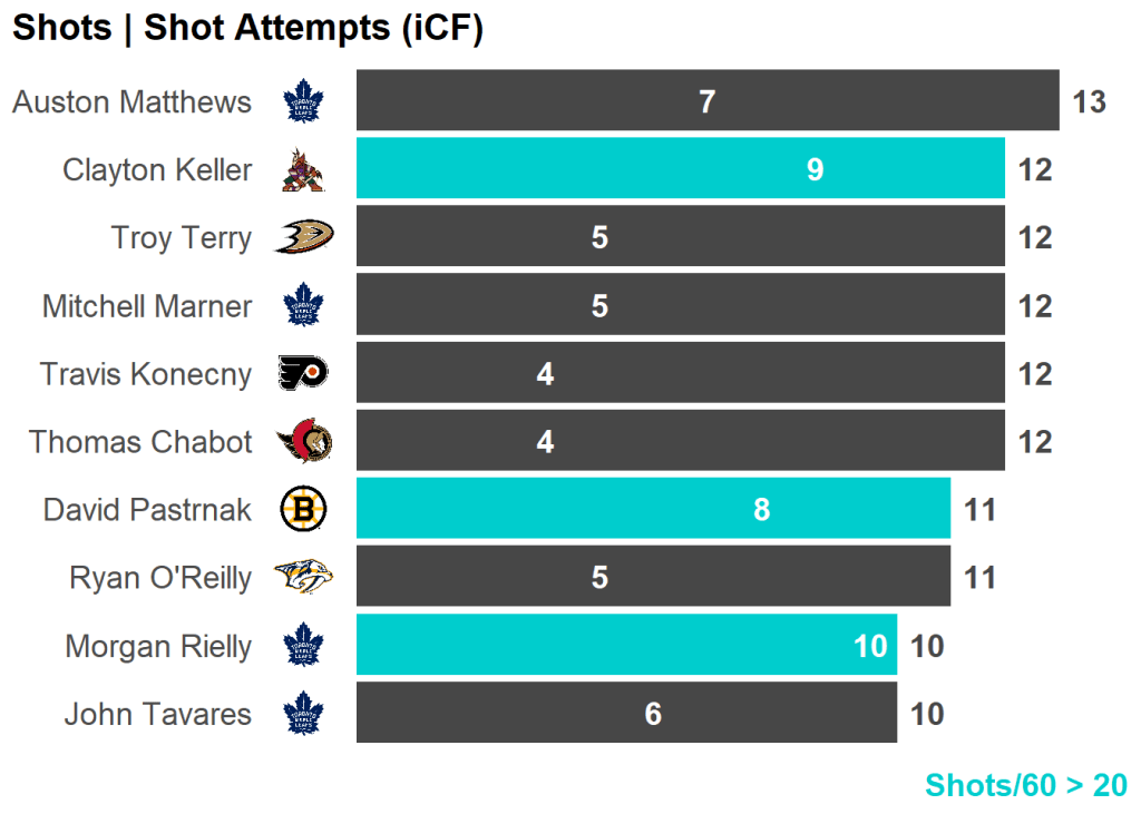 All skaters with 3+ Shots or 3+ Scoring Chances