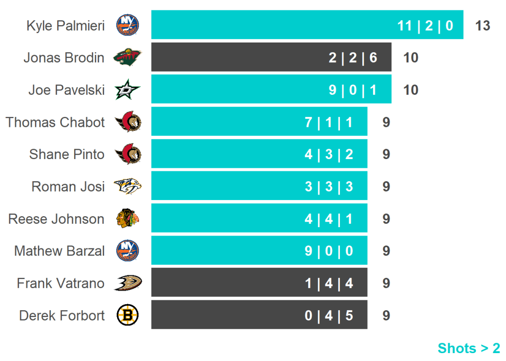 All skaters with 3+ Shots or 3+ Scoring Chances
