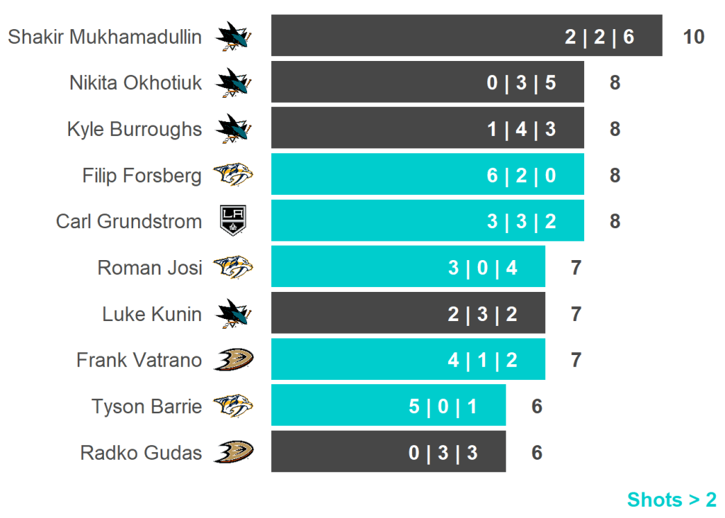 All skaters with 3+ Shots or 3+ Scoring Chances
