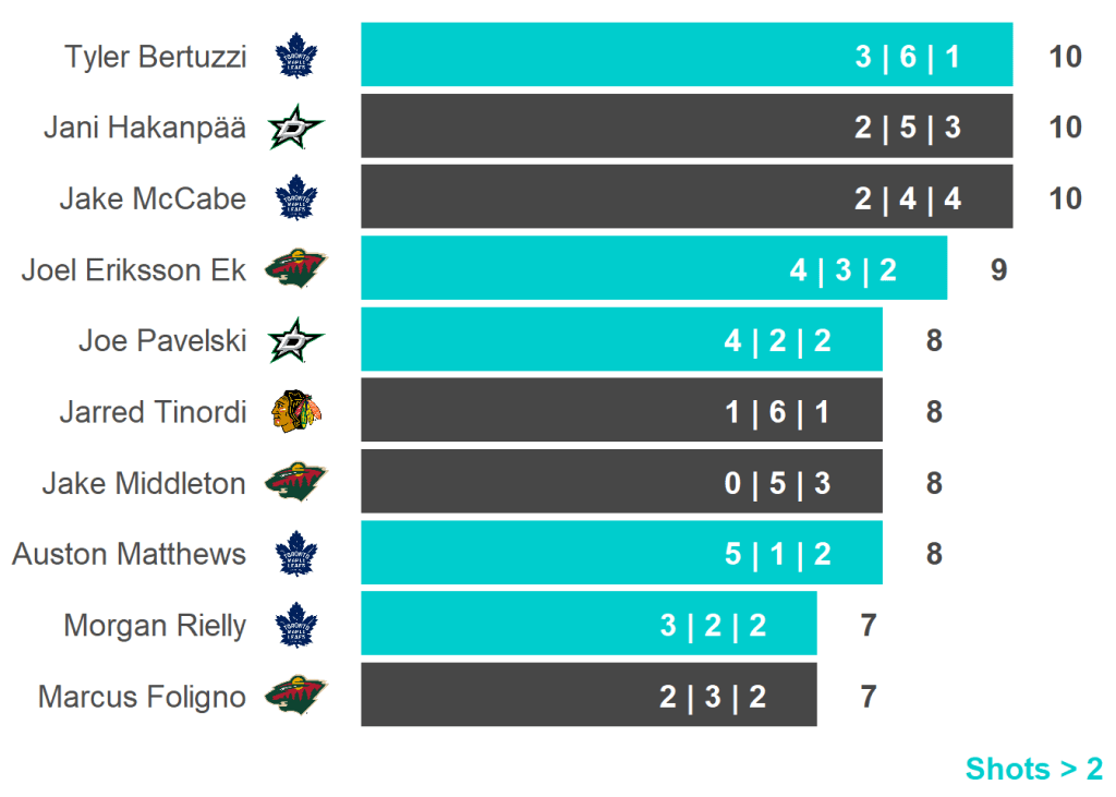 All skaters with 3+ Shots or 3+ Scoring Chances