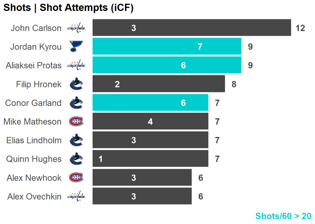 All skaters with 3+ Shots or 3+ Scoring Chances