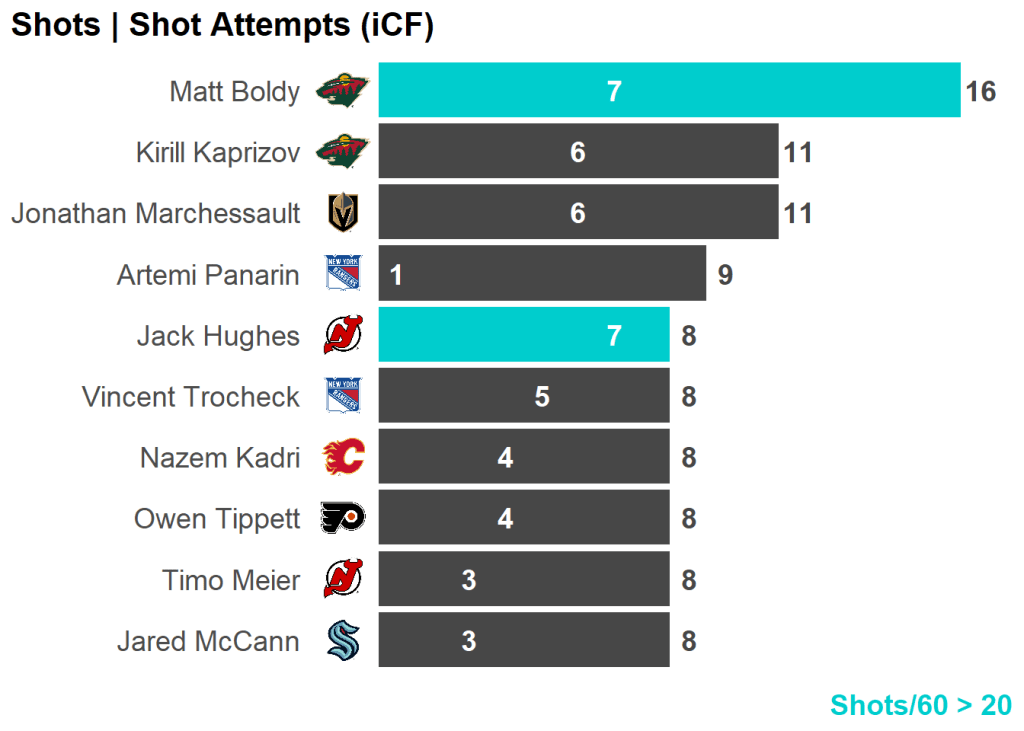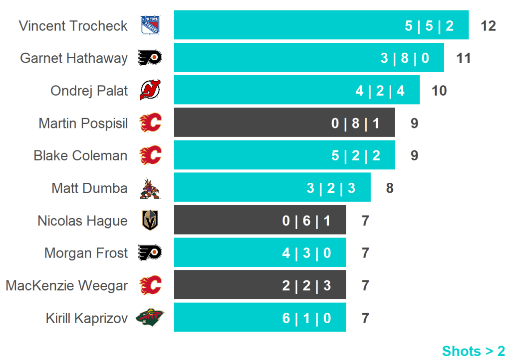 All skaters with 3+ Shots or 3+ Scoring Chances