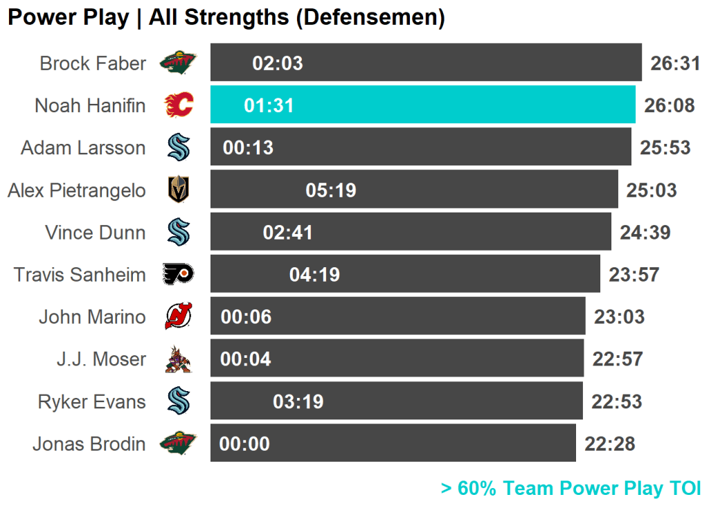 | Noah Hanifin | Calgary Flames | 0 | 0.00 | 4 | 0.05 |
