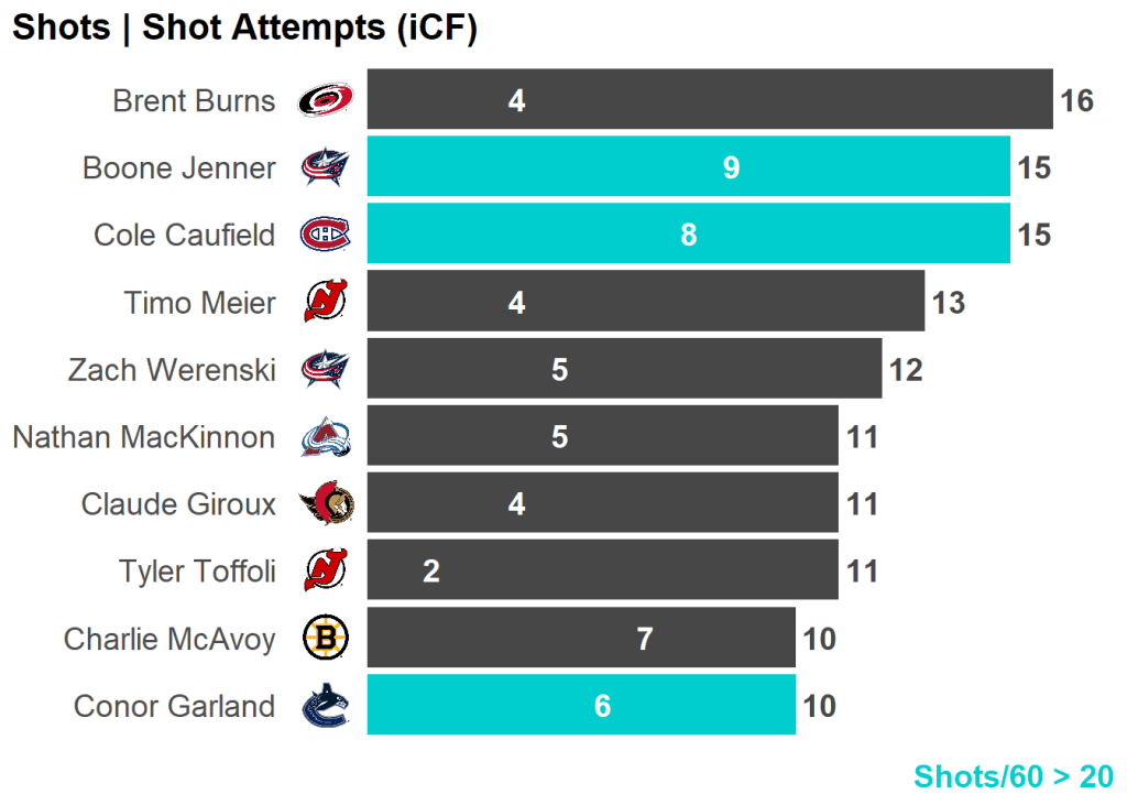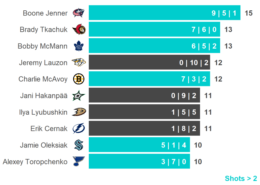 All skaters with 3+ Shots or 3+ Scoring Chances