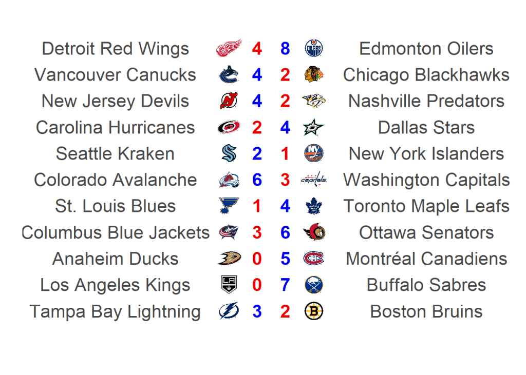 | Connor McDavid | Edmonton Oilers | 0 | 6 | 6 |