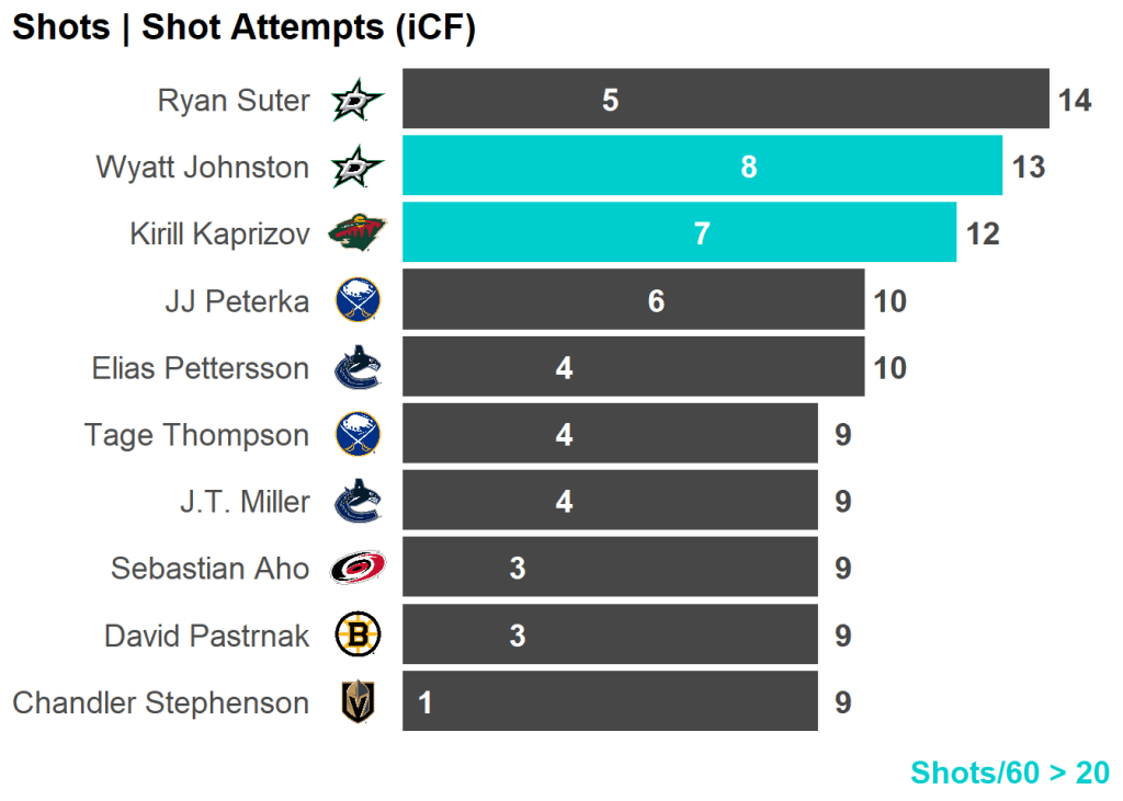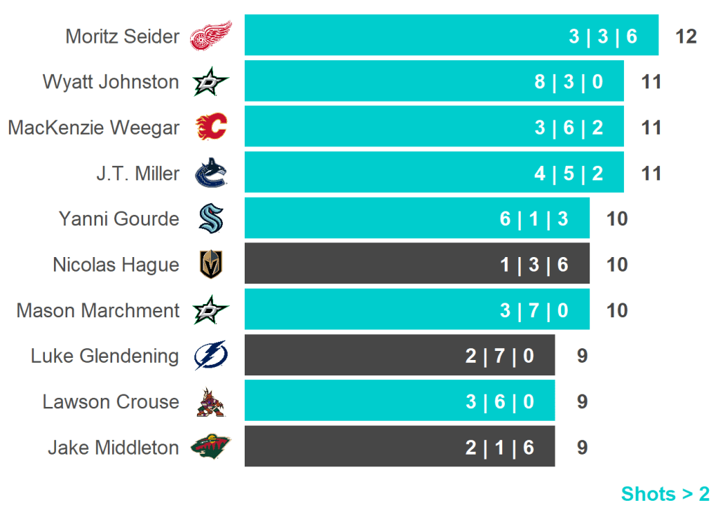 All skaters with 3+ Shots or 3+ Scoring Chances