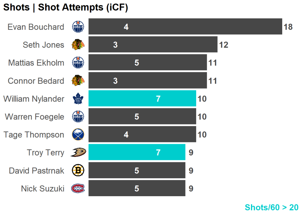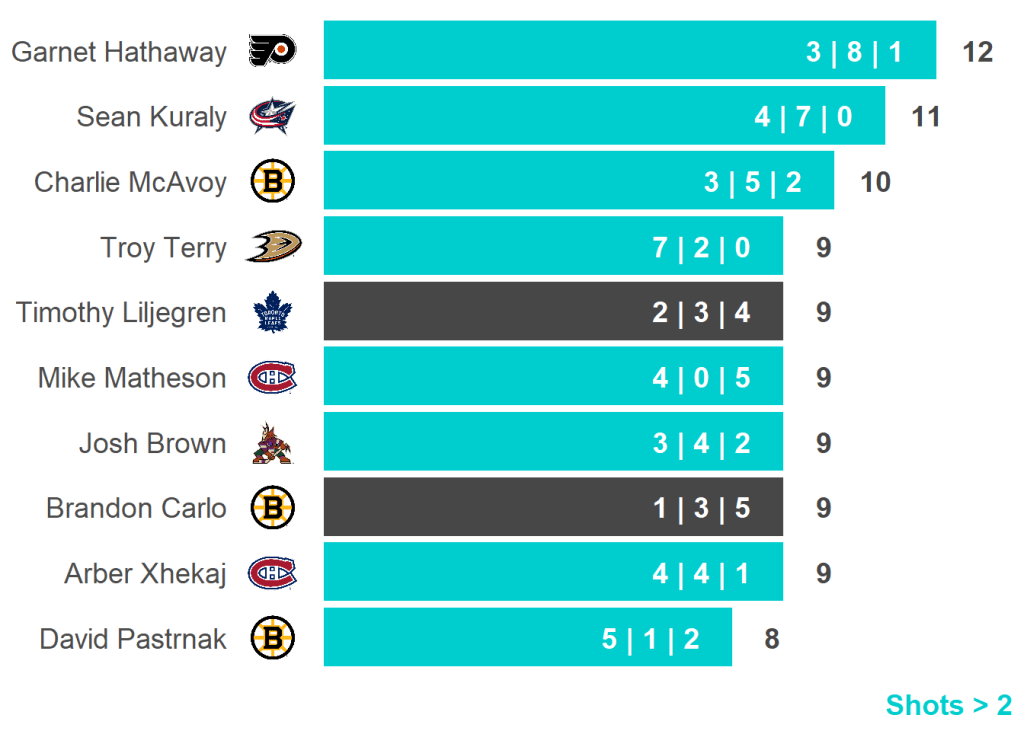 All skaters with 3+ Shots or 3+ Scoring Chances