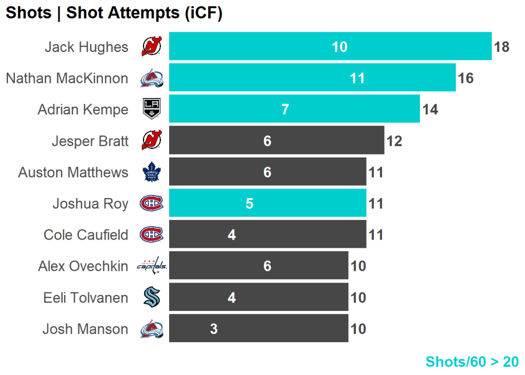 All skaters with 3+ Shots or 3+ Scoring Chances