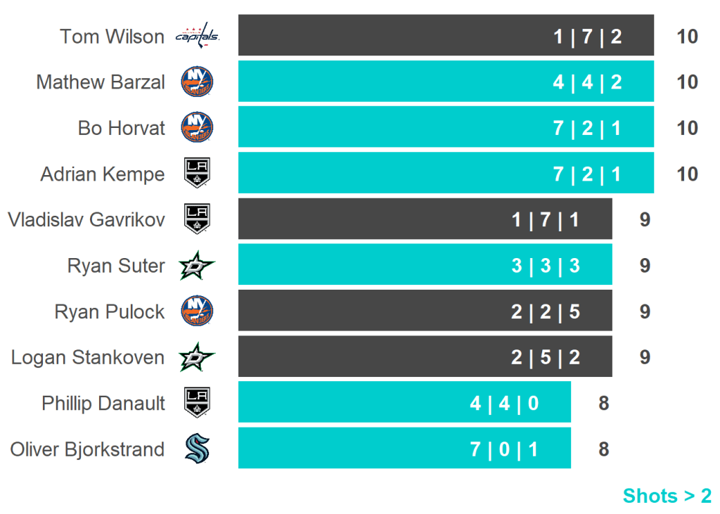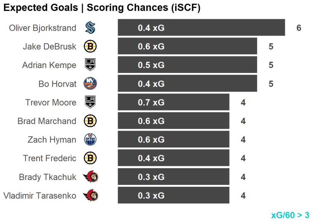 All skaters with 3+ Shots or 3+ Scoring Chances