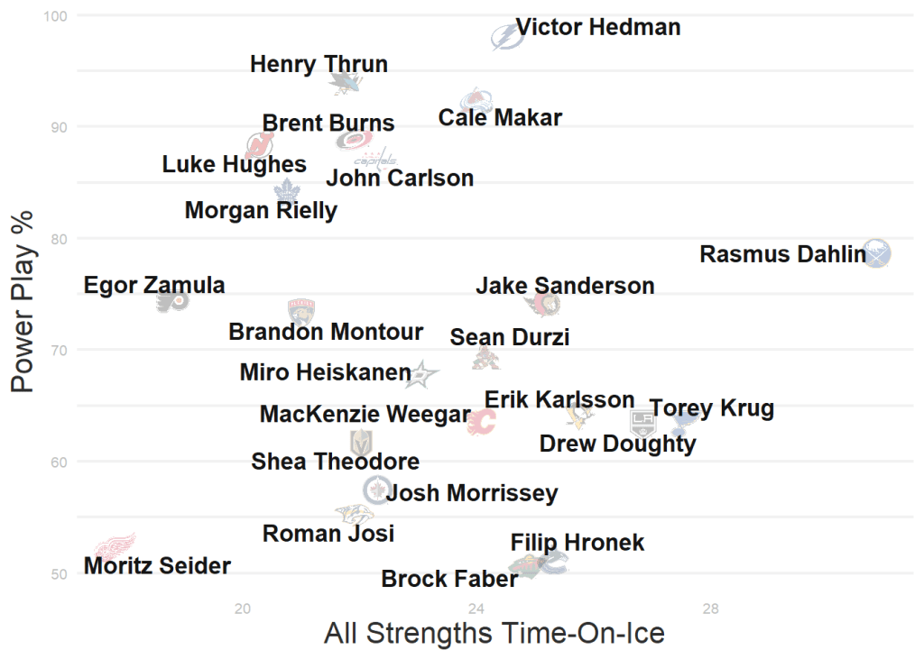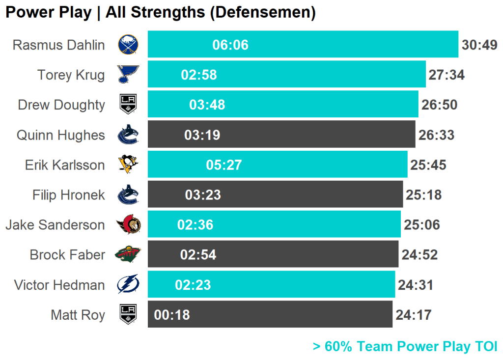 | Quinn Hughes | Vancouver Canucks | 03:19 | 50.3 | 70.4 | -20.2 |