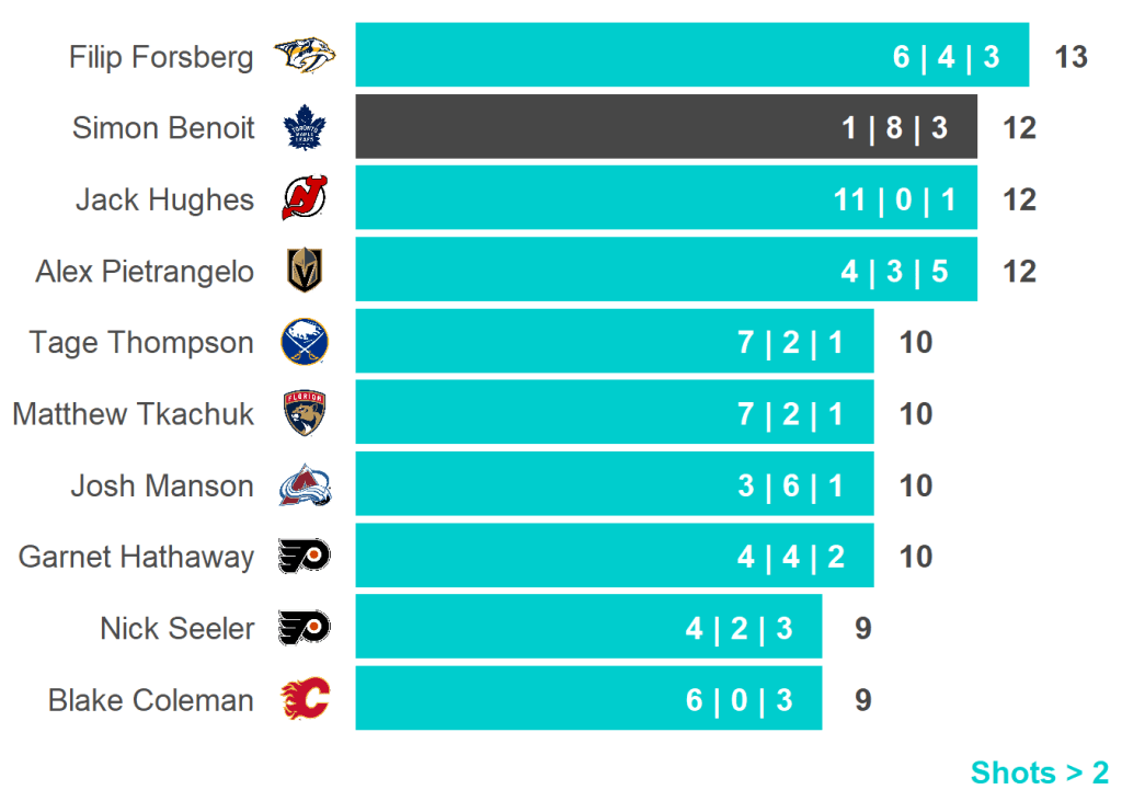 All skaters with 3+ Shots or 3+ Scoring Chances