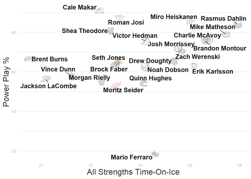 | Morgan Rielly | Toronto Maple Leafs | 01:06 | 55.0 | 78.9 | -23.9 |