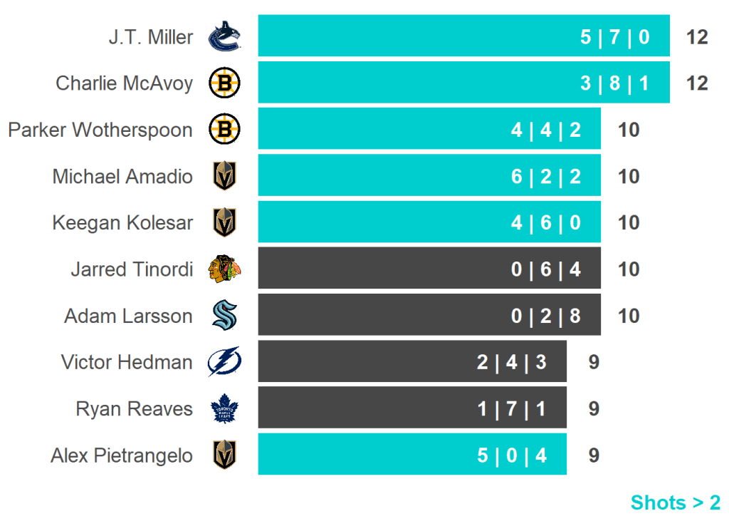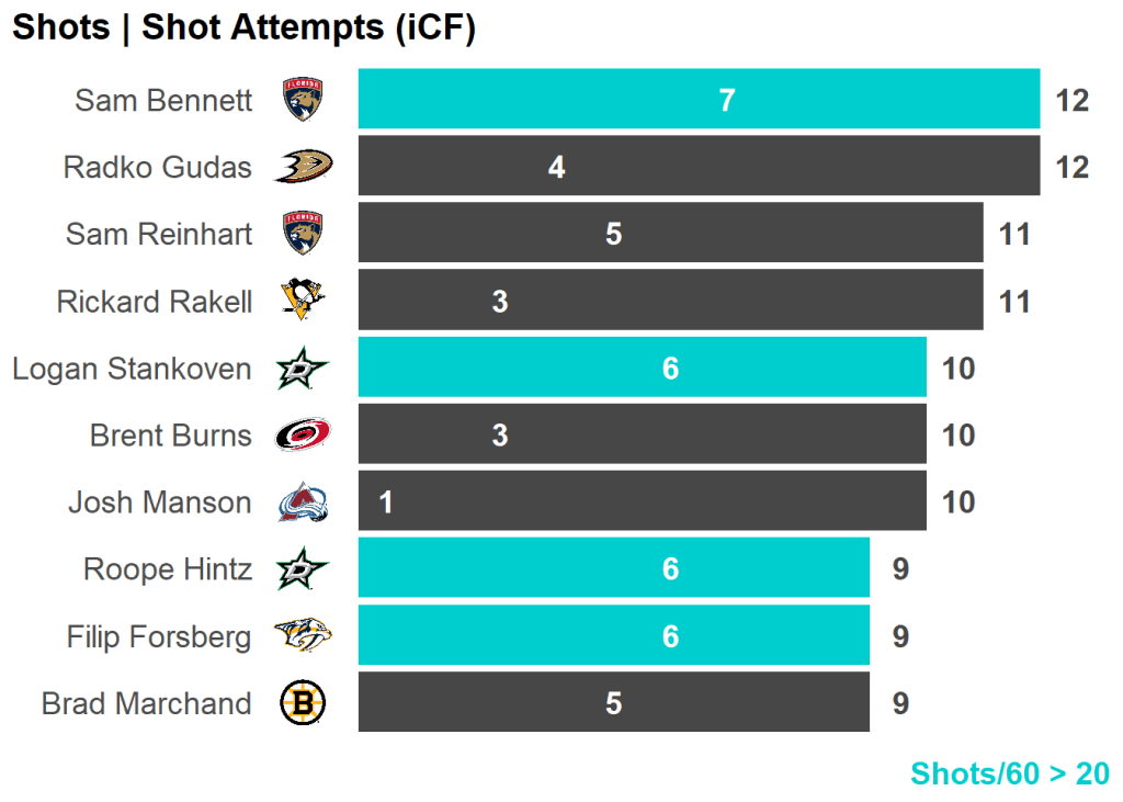 All skaters with 3+ Shots or 3+ Scoring Chances