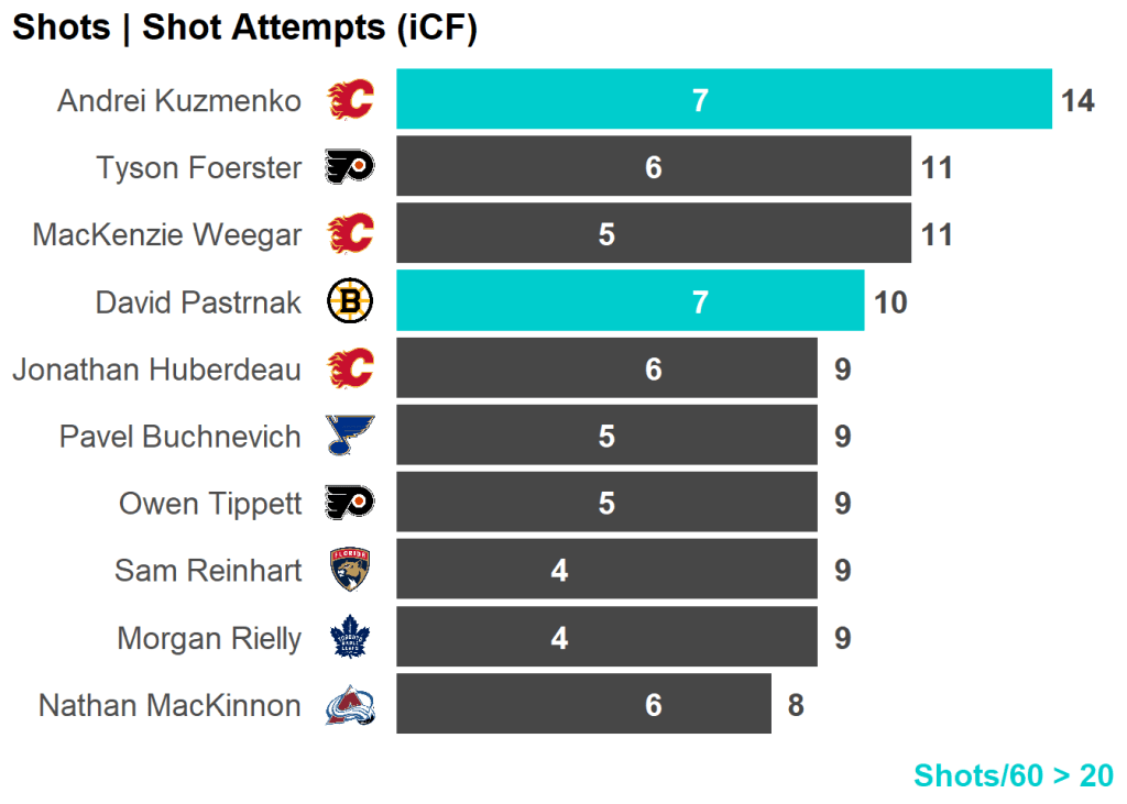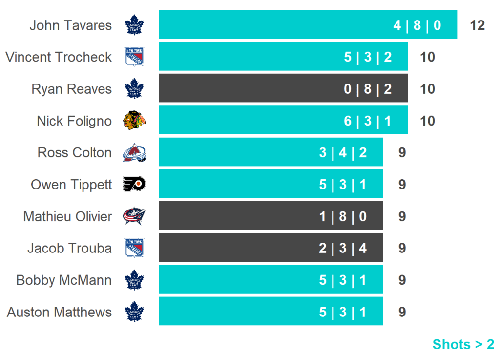 All skaters with 3+ Shots or 3+ Scoring Chances