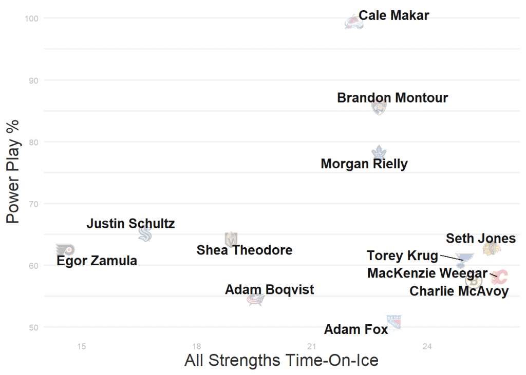 | MacKenzie Weegar | Calgary Flames | 5 | 11.61 | 1 | 0.15 |