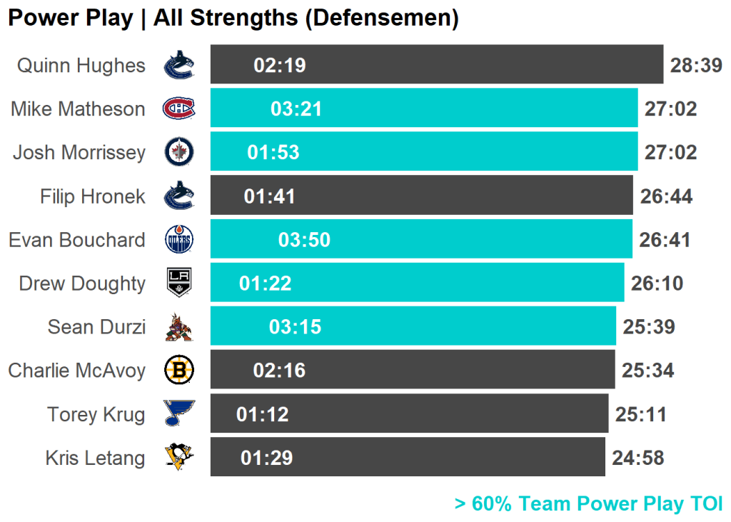 | Quinn Hughes | Vancouver Canucks | 2 | 4.19 | 3 | 0.12 |