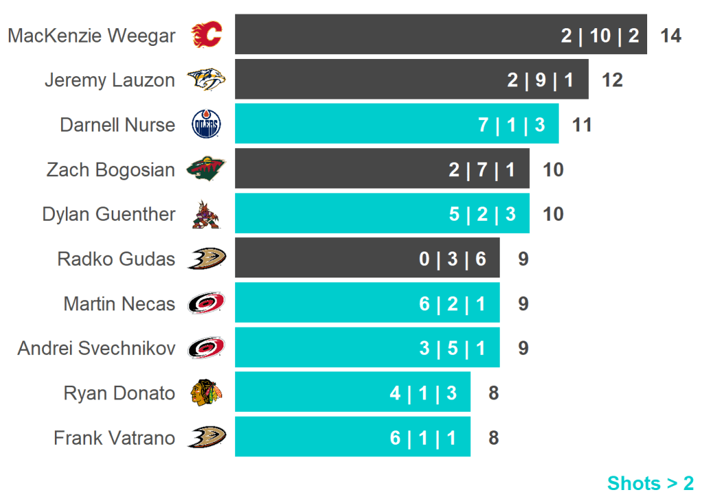 All skaters with 3+ Shots or 3+ Scoring Chances