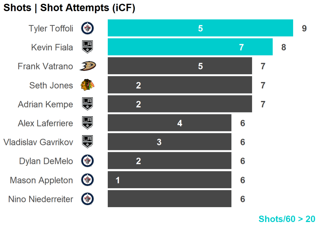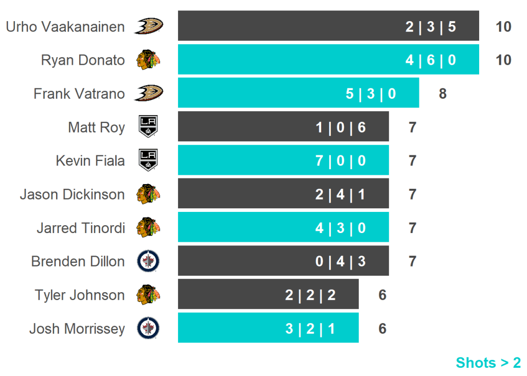 All skaters with 3+ Shots or 3+ Scoring Chances