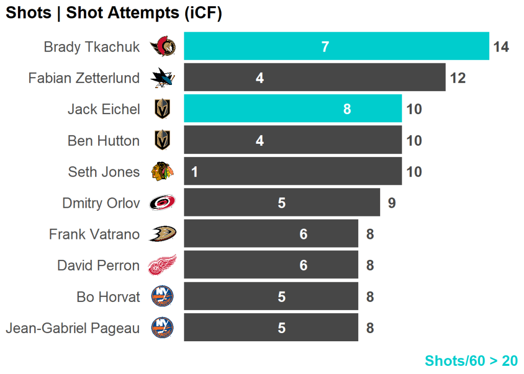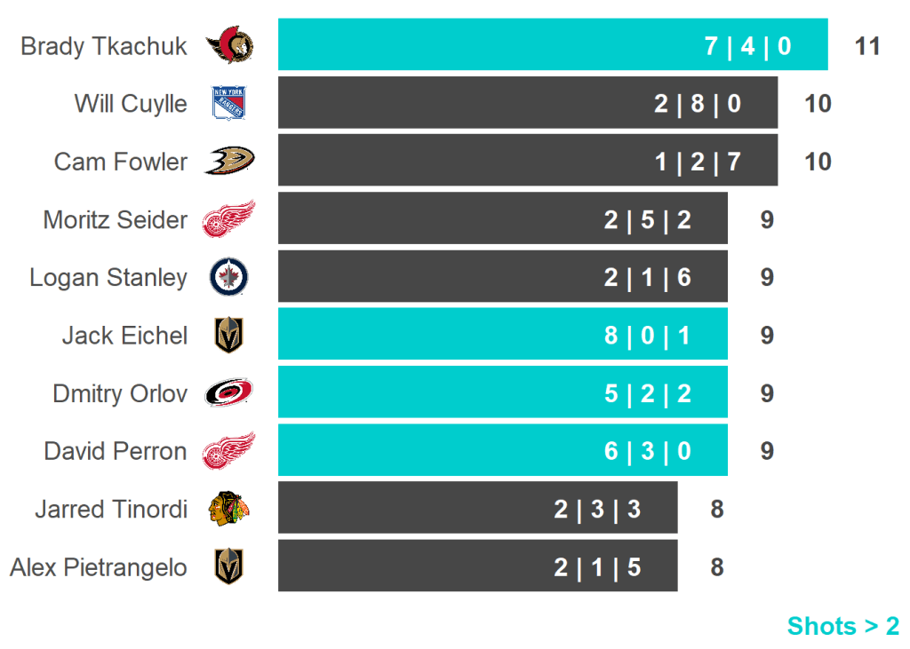 All skaters with 3+ Shots or 3+ Scoring Chances