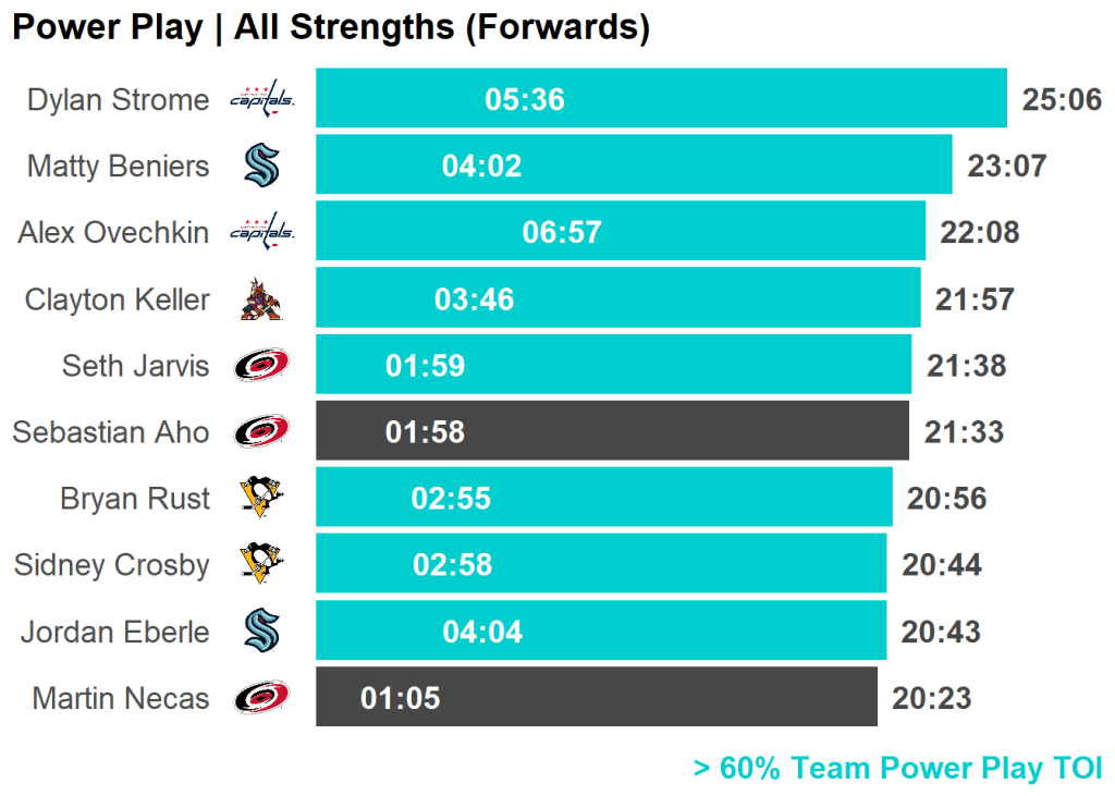 | Dylan Strome | Washington Capitals | 0 | 0.00 | 3 | 0.21 |