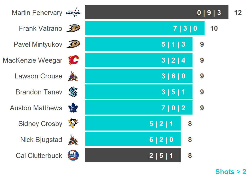 All skaters with 3+ Shots or 3+ Scoring Chances