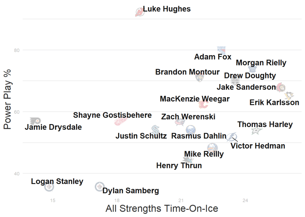 | Mario Ferraro | San Jose Sharks | 01:13 | 30.4 | 6.1 | 24.3 |